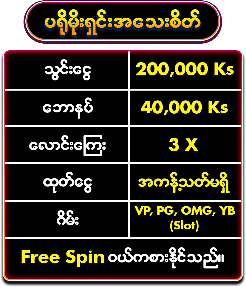 ❄️ ပ႐ိုမိုးရွင္းျဖင့္ VP / PG / OMG / YB စေလာ့ ဂိမ္းတြင္ ကစားႏိုင္သည္။ ဖရီးစပင္စိတ္ႀကိဳက္ ဝယ္ကစားႏိုင္သည္။